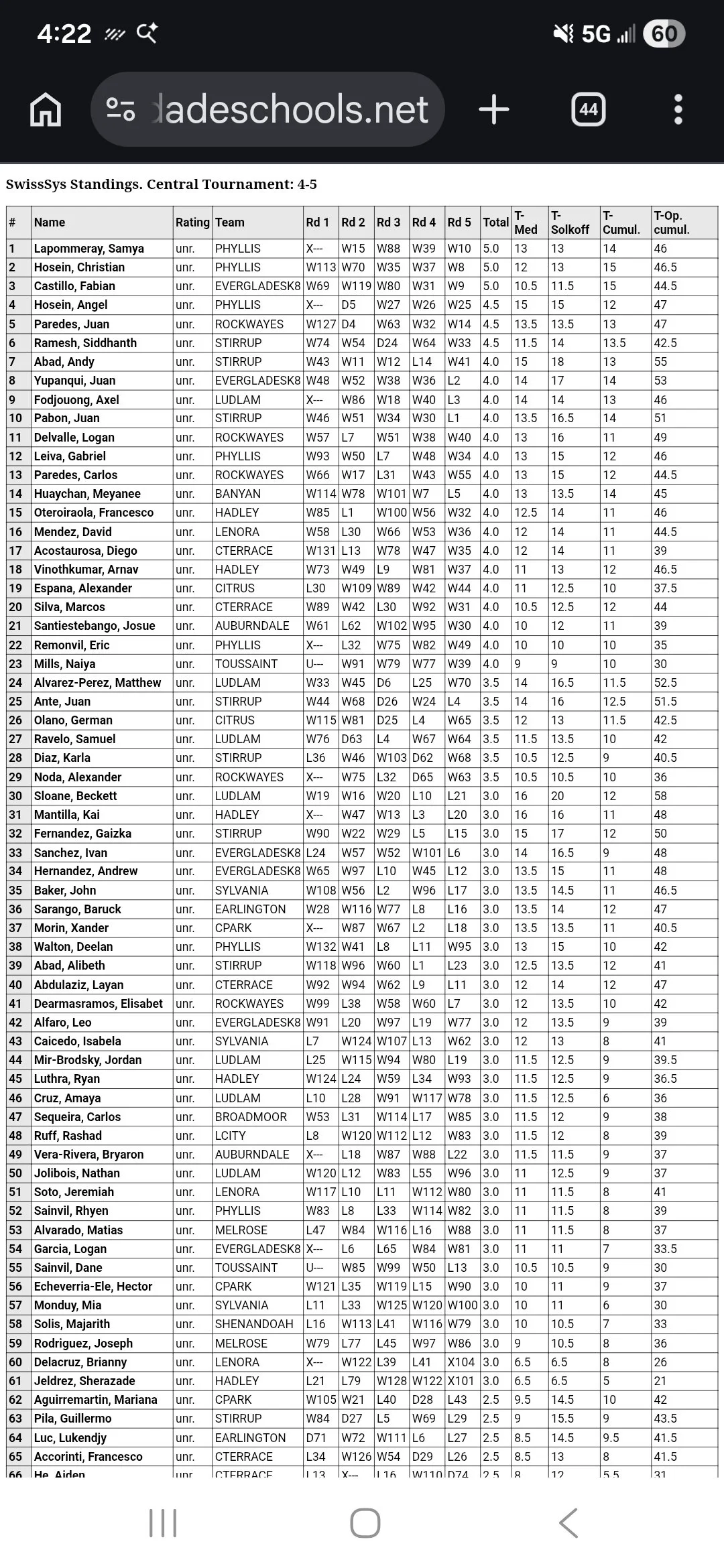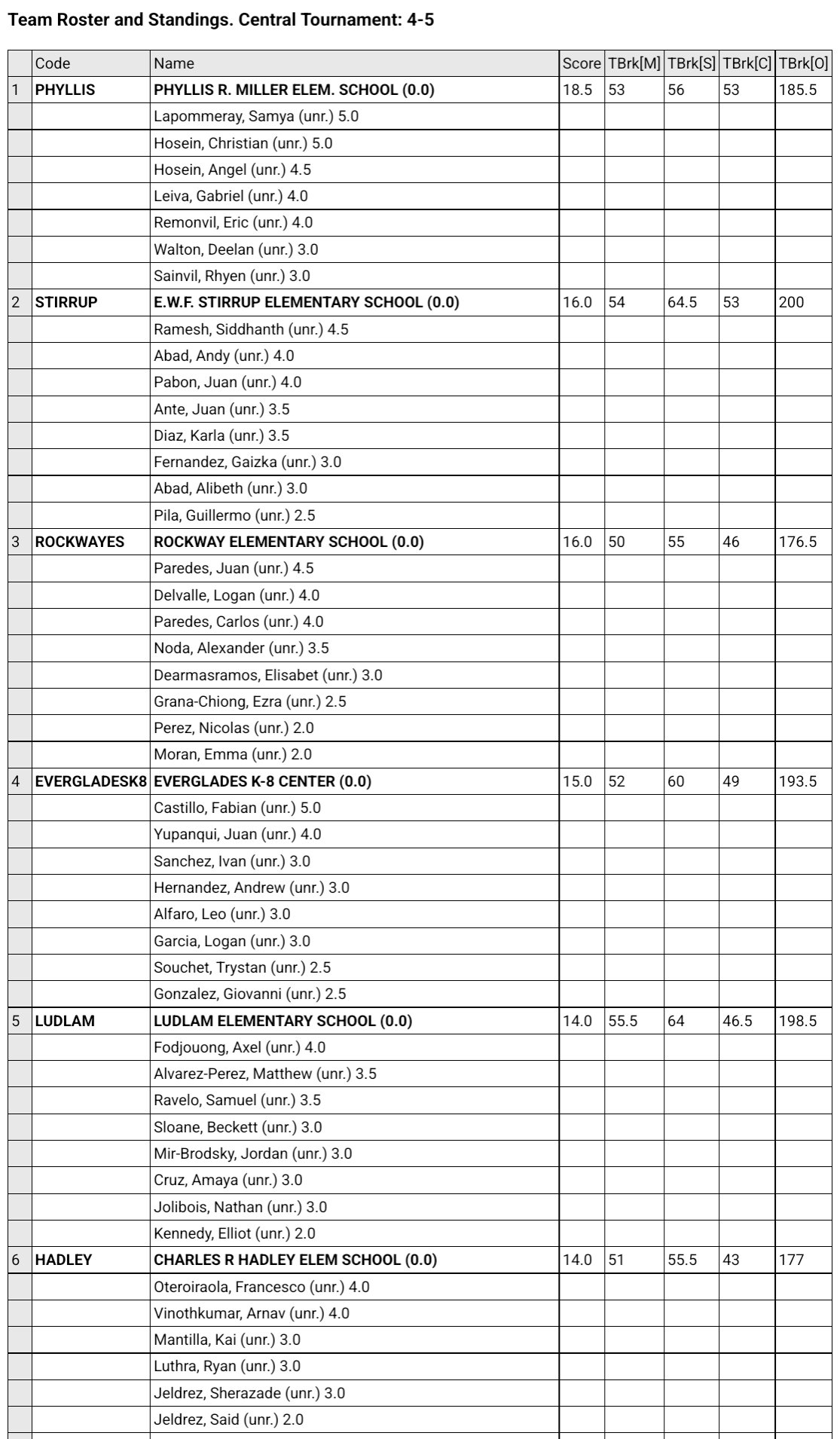 The Ponce Team finished middle of the pack at 7th place out of 14 schools. Not to shabby considering we only had 4 players in our team when compared to the other schools that had between 8-10 players. The team consisted of Joseph, Felix, Sofia and Viviana. Our two top players leading the team were Joseph and Felix who both finished with respectable scores of 3/5. Very proud of the team. They will be ready for the Super Nationals in May!