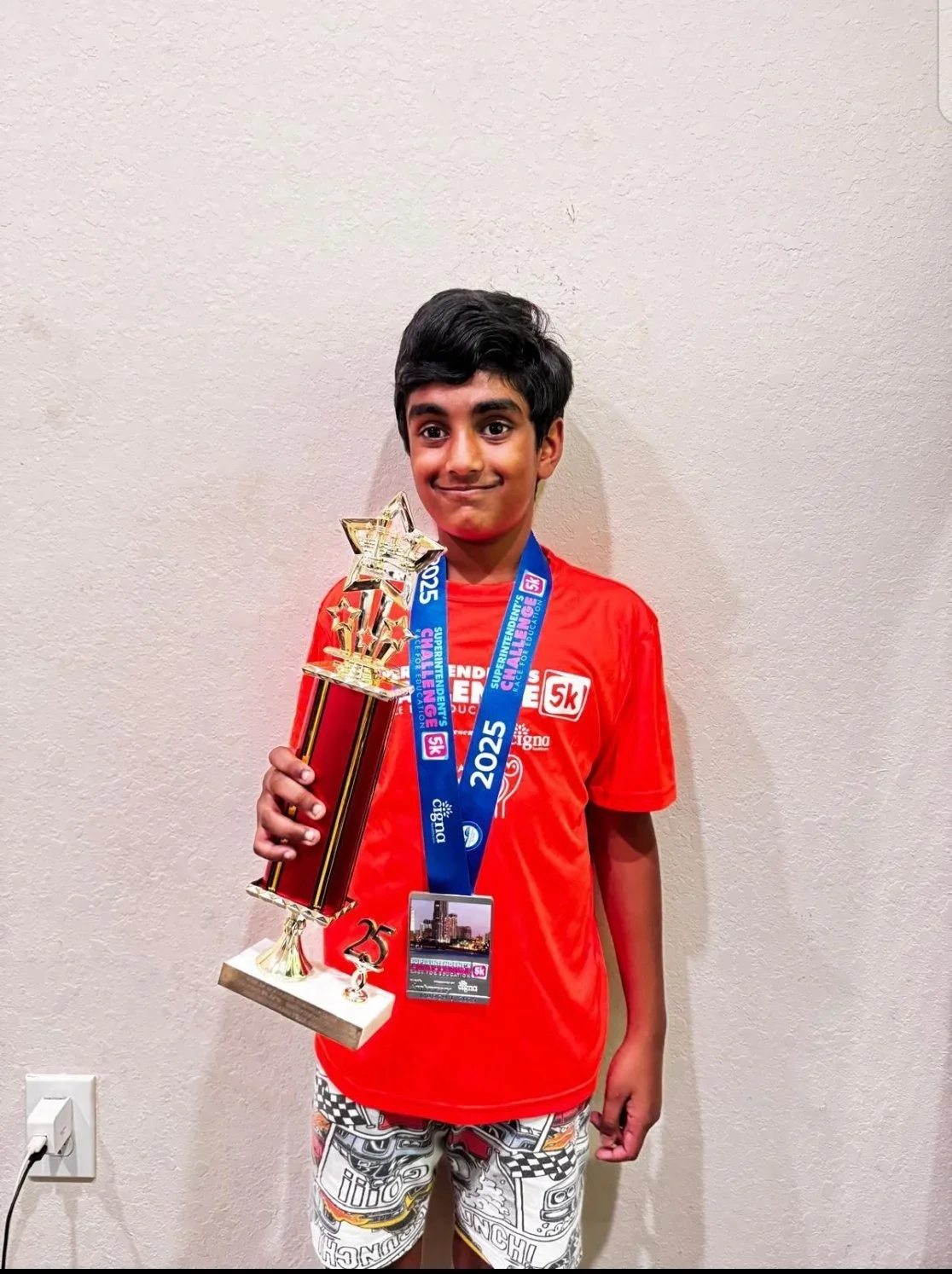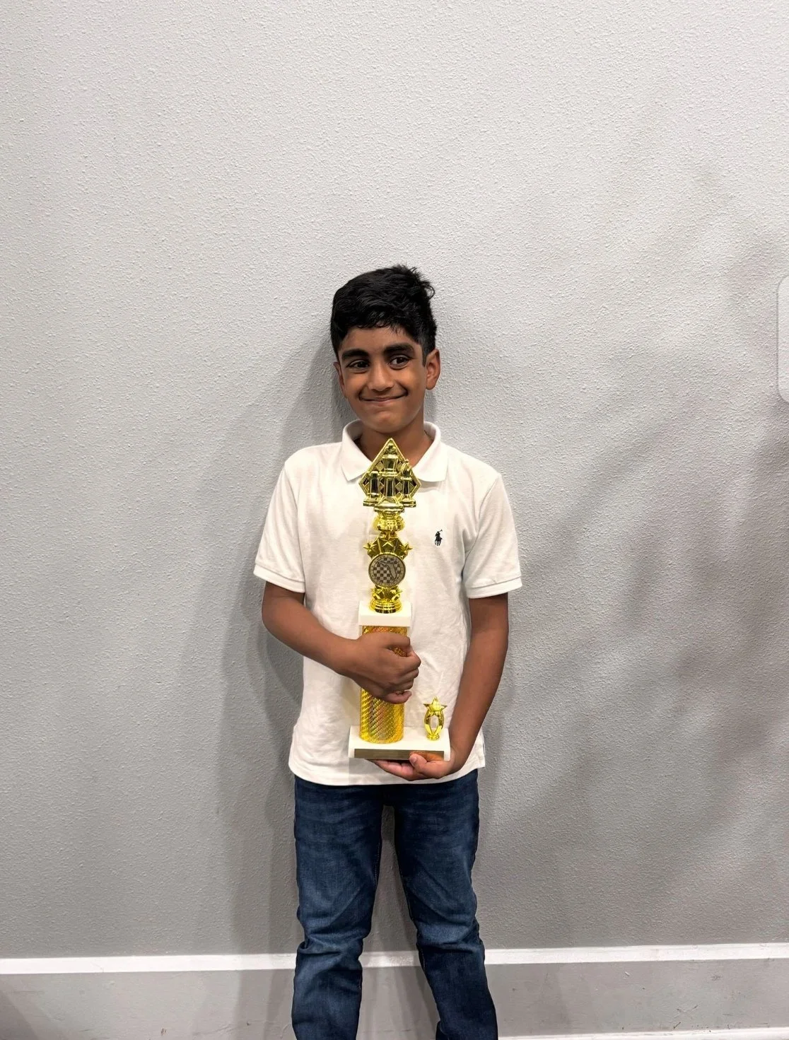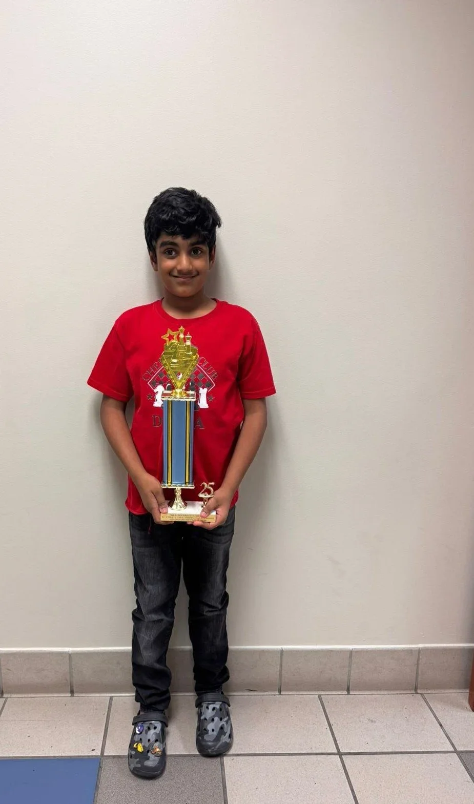 Congratulations goes to Mr. Aariv for placing 5th with 4/5 in the K-3 section and adding another trophy to his collection. I have to admit I am a little jealous as I have not won a single trophy yet this year…
